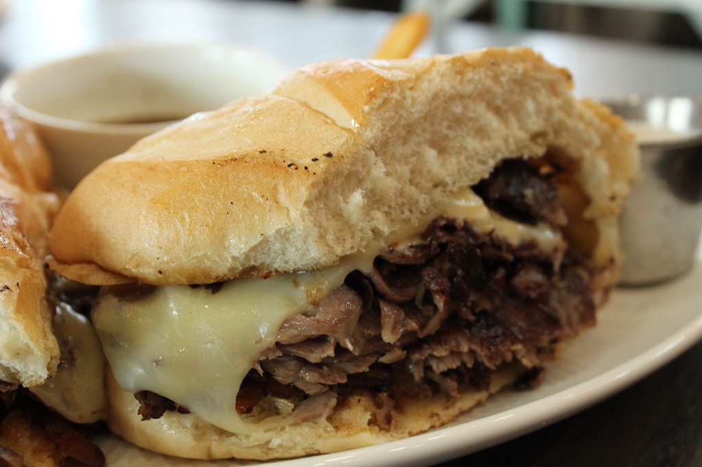Shaved prime rib, caramelized onion, provolone cheese, horseradish sauce, on a French roll, au jus