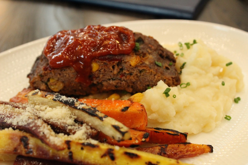 Meatloaf with a kick of peppers and corn, topped with smoky chipotle glaze.