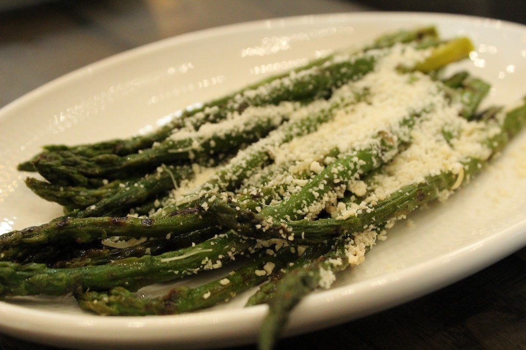 Served over buttermilk mashed potatoes with green chili queso and grilled asparagus