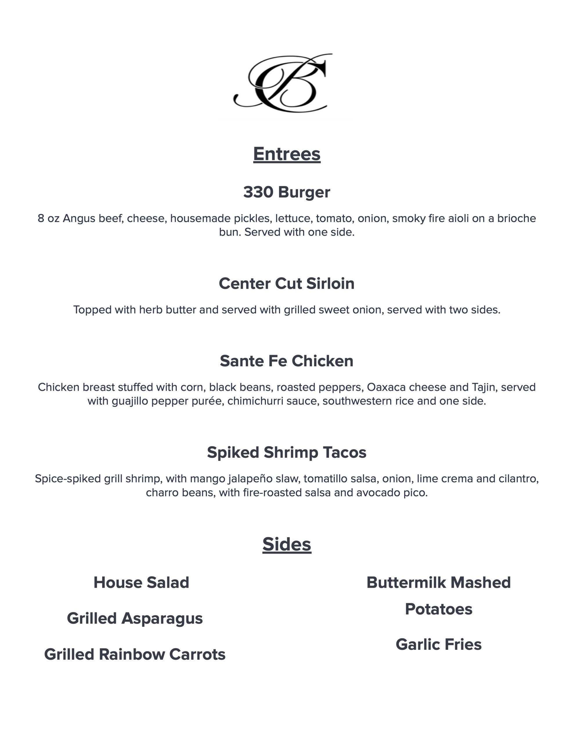 - Fixed/limited menus available. See an example here.
